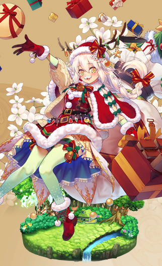 | 初登場 | 見て見て団長さま、これ、サンタの服! あたしなんかがこんな素敵な服着ていいのかなぁって、ちょっと戸惑うけど、 でも、もらったからには、サンタとしてしっかり頑張るね! | 常設01 | 101 | 001 |