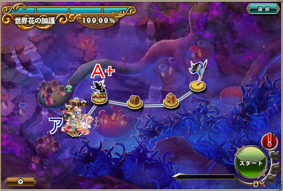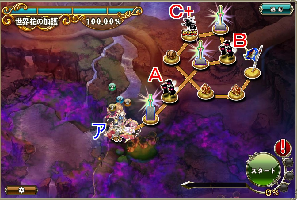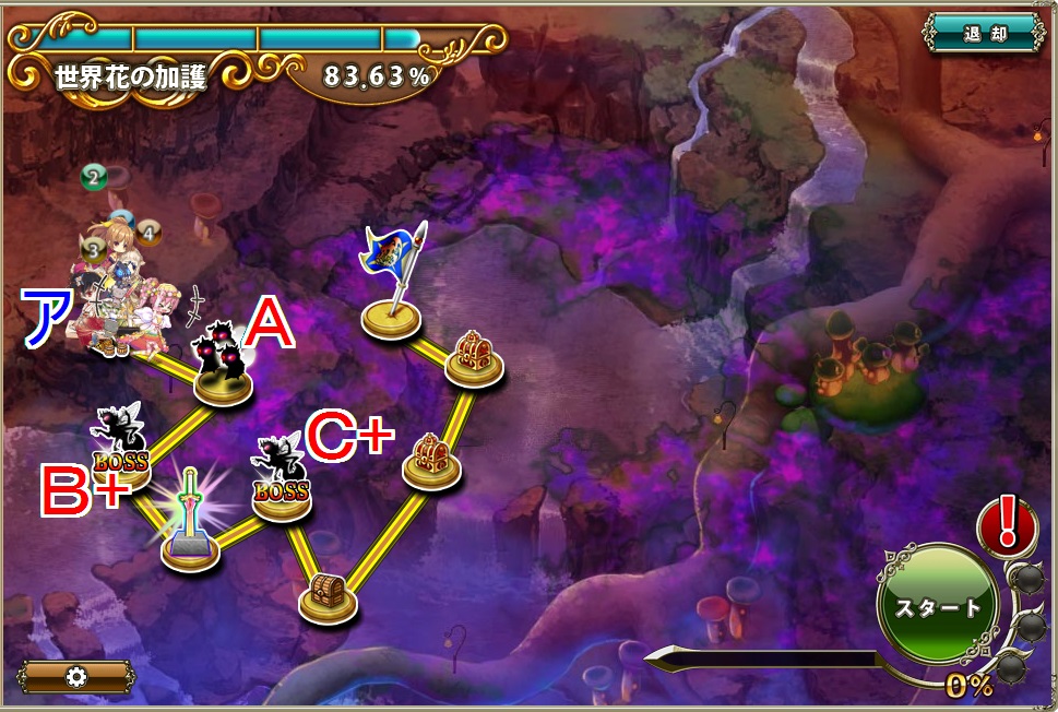 - 移動力547の先行PTと移動力586の後発PTならAとB+は先行PTがC+は後発PTが戦闘する。