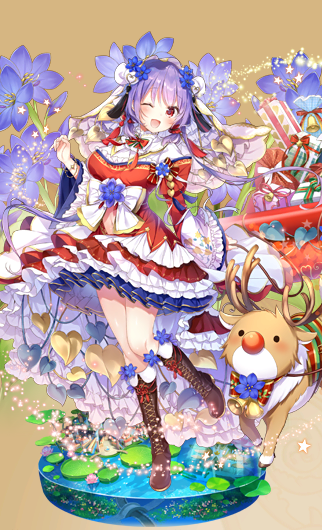| 進化 | 今の私に、できないことなんてありません!何故なら、お姉ちゃんサンタだからです! 二つのパワーがフルチャージ完了しました!さあ、団長さん!ドドーンと甘えちゃってください! | 常設35 | 135 | 035 |