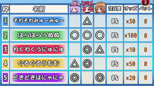 ナズナ適度に当て、適度に外す、そんな予想屋です。 常にいる。ただのにぎやかし、ふいんき()担当で、3人の選手に無作為に印をつける。