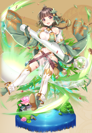 | 初登場 | 団長~。私ヨモギだよぉ。会えるの楽しみにしてた~。 薬草のことには自信があるから、それで助けてあげるよぉ。 あとあとぉ、お団子作るのも得意だから、後で持ってくねぇ。 |