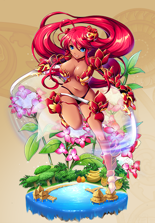 | 【期間限定】夏④ | バナナオーシャン出身でも、この暑さでは汗かいちゃうわね~。団長さんもビショビショじゃな~い! 二人仲良く、お風呂入っちゃいましょうか? 背中くらい流してあげるわよ? お望みなら……それ以上も❤ ウフフッ♪ |