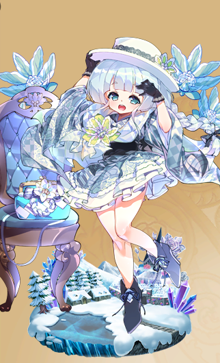 2019/02/12 精華祭スノウロマンティカ人気投票にて総合2位として、別バージョンキャラクター実装(★5)、専用スキンの実装、キャラクター専用装備の実装、ハツユキソウに関連した庭園アイテム実装の予定が決定された。