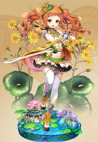 | 夏② | 夏バテなんて、わたしには縁の無い言葉です。いかなる時でも戦える、丈夫なだけが取り柄の花騎士ですから! お疲れの皆さんに代わって、任務は全部こなします! 遠出になるような任務でも、安心して任せてください。 |