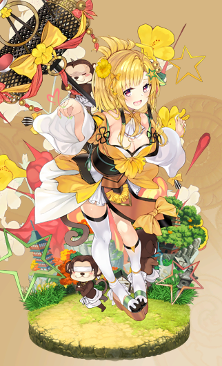 | 開花 | これまでずっと見守ってくれてありがとうございます。 アタシを笑顔にしてくれる団長さまのために、これからもっともっといろんな技を磨いて頑張っていきますね。 | 常設37 | 137 | 037 |
