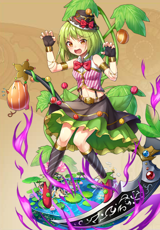 | 自己紹介 | 花言葉は「いたずら好きの」!花騎士、ヤマゴーヤっぴゃー! マーヤは、おもちゃが大好き! びっくり箱やおもちゃのラッパで、みんなをビックリさせちゃうよーっ! そして憧れの人は、もっちろんアデニウム様! ハナイっちには負けないっぴゃー! | ||||||||||