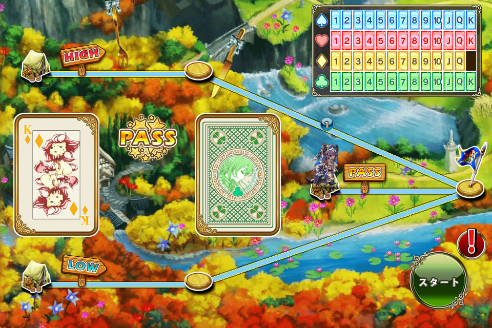 数字が大きい(High)か小さい(Low)を予想し、その予想の正誤で勝敗を決します。