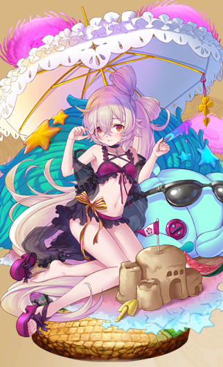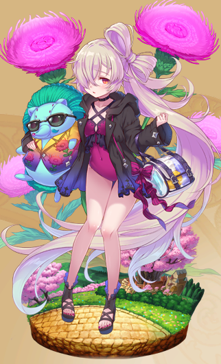 | 初登場 | 水着、着てみたんだけど似合ってますか……? わたしだけじゃなくて、パパも着てるんですよ。 これで夏の装いもバッチリです。 でも……日焼けは嫌だから、日陰にずっといようかな…… | 常設01 | 101 | 001 |