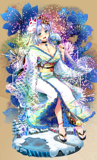 | 自己紹介 | 改めて自己紹介って言われると、なんだか照れちゃいますね。 もう団長さまは「淡い初恋」「約束を守る」って花言葉の意味も知ってると思いますし。 強いて言うことがあるとがあるとすれば、この浴衣でしょうか。 人生初めての浴衣なんですよー。 |