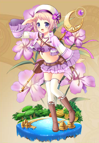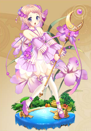 宝玉付きの杖とフリルの付いた服という、かわいらしい魔法少女といった雰囲気の花騎士。