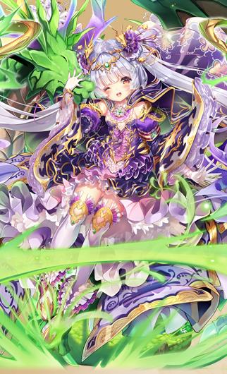 花騎士で竜というと進化竜を連想するが、彼女の場合は武器の水晶に宿った精霊の様な存在らしい。