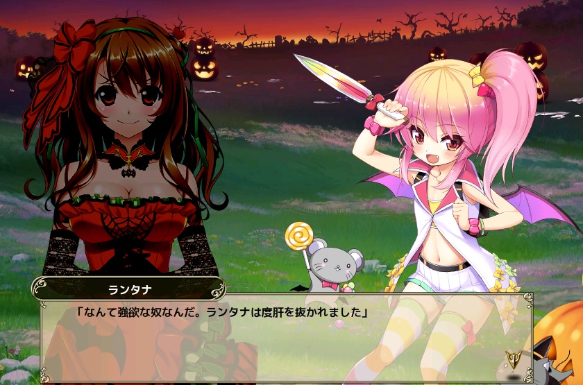 | 【期間限定】ハロウィン③ | ふっふっふ、ランタナはカボチャ芸人じゃないよ。私にだって、カボチャ以外の仮想はあるのだー! そ・れ・は……と、フェイントからのカボチャだー! |