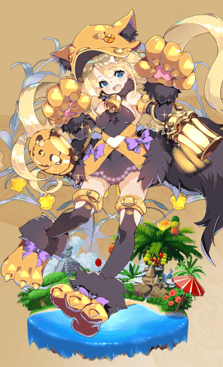 | 進化 | がっ、がおぉー!! お菓子をくれないと、いたずらしちゃいますよぉ~! ……はうぅぅ……。衣装に合わせて、言ってみましたけど……。これ……すごく恥ずかしいですぅ~! 心臓の音、聞こえてませんか? 大丈夫ですか、団長さ~ん……。 | 常設36 | 136 | 036 |