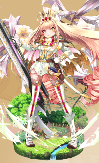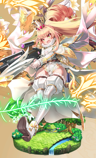 「王冠」の名の通り頭には冠を乗せ、得物として身の丈ほどもある狙撃銃を携えている。