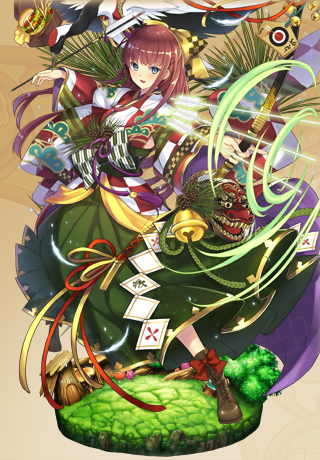 | 【期間限定】お正月② | 独楽回し、福笑い、凧揚げ、歌留多、羽根突き……。 元旦は特有の遊戯がたくさんありますから、きっと団長さんは花騎士たちから一日中引っ張りだこになることでしょう。 |