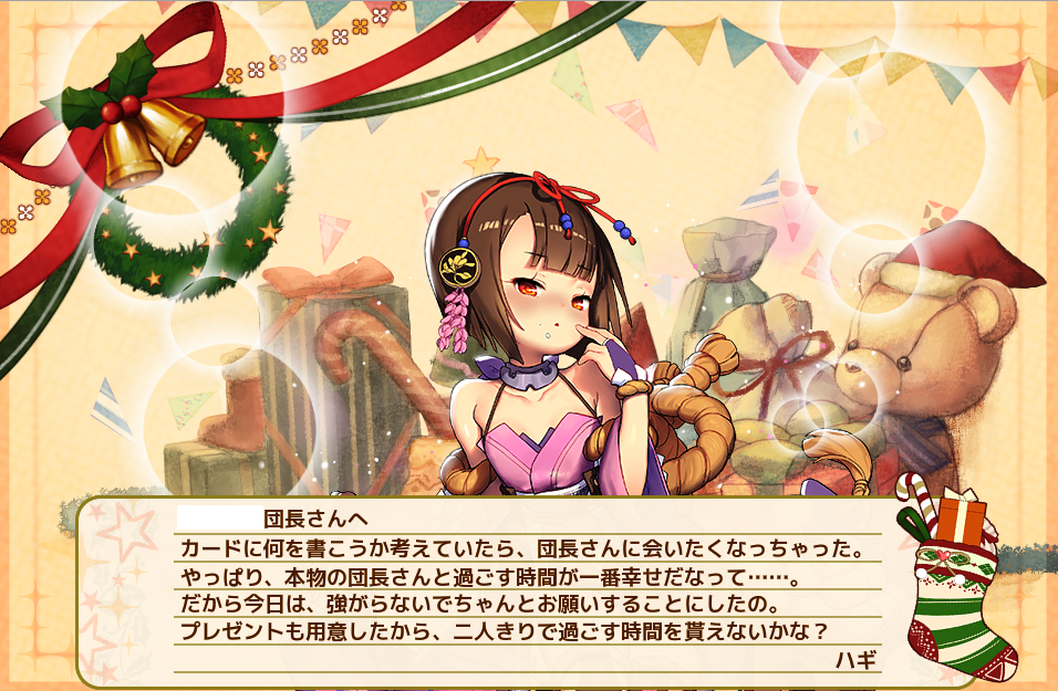 だからすっごく…とても安心できるんだ…気付いたよ、わたし団長さんが居てくれればね…本当に…えへへ、団長さん!みんな元気!わたし元気!