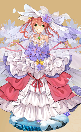 ウェディングドレスに着替えると、開花・クリスマス版進化前に近いドレスへとチェンジ。今回は髪を下ろし、美しい長髪を見せてくれる。