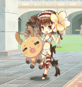 | 初登場 | 水着姿のホーリーをよろしく♪ ポインセチアと一緒に選んだこの水着で、 団長の視線を一人占めしちゃうからね♪ |