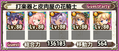 | D+ | Lv??? シンフォニオン Lv??? シンフォニオン Lv??? シンフォニオン | 湖畔 | 突 突 | 敵:攻撃力+100%、次スキル発動率+100%、再行動(上限解放)100% |