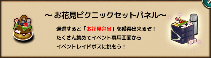 勲章報酬 スタミナ ゴールド ガチャ種 害虫討伐証 経験値 宝箱 備考 スキップチケット×15 0 5 5 0 0 1(お花見弁当×33) -
