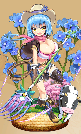 毎朝乳牛の乳しぼりをこなしている生活から巨乳花騎士の乳を揉むのが趣味で、他の花騎士達を困惑させている。