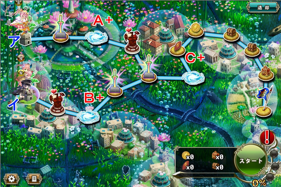 | B+ | Lv37 ゼラニウム? | 斬 | 攻撃力 30% アップ 防御力 10% アップ スキル発動率 1.2倍 A+(クロユリ?)を倒すと撤退 | ||