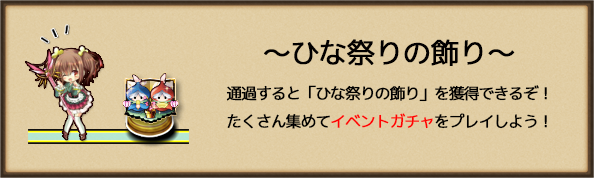 - 今回のイベントでは小バエとの衝突でもひな飾りを入手するため、害虫の巣のあるステージでは誤差が生じる。