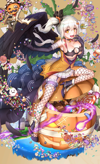 | ハロウィン① | 我が祖父直伝の変装術! ハロウィンで存分に披露してやろう! まずは墨で顔を黒く塗りたくり、その上で仮面をかぶって……え? 可愛い顔が隠れるのは忍びない? だ、団長が言うならしようがないなあ~♪ 顔は出してあげるよ。 | 017 | 041 | 072 |