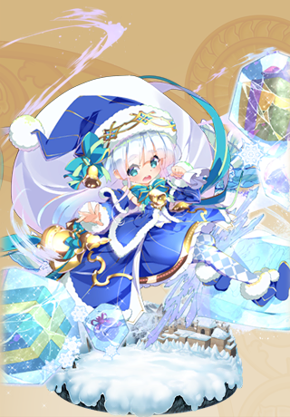 進化前はサンタ服、進化後は雪だるまを模した帽子に白スク水を身にまとう。