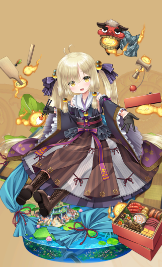 進化後仲間と一緒の新春の牛鬼面Lv 1:攻撃力+327 防御力+123