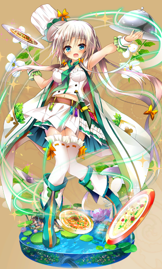 | 初登場 | アンシャンテ! トリトニア調査隊のキュイジニエール、クレソンだよ。 料理のことなら、私になんでも任せてね! 腹ペコたちの胃袋、バシッと満たしてみせるから! |