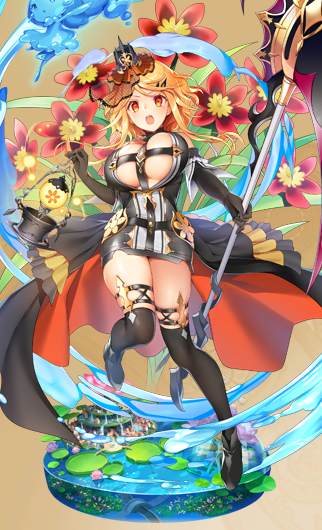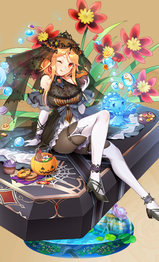 | 自己紹介 | 花言葉らしく「陽気な人生」でハッピーエンドに一直線!……っていきたいところだけど、 それだけじゃ色気がないから「神秘な人」は仮装で表現しちゃう♪ 死神衣装っぽいよね、これ。結構悪くないでしょ?褒めてもいいんだよ~、団長さ~ん♪ | ||||||||||